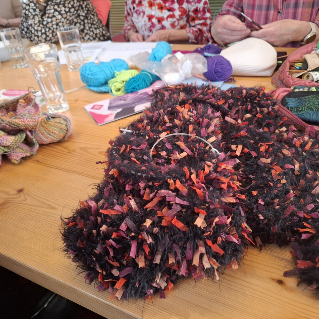 Un moment chaleureux et de détente entre passionnés de tricot.